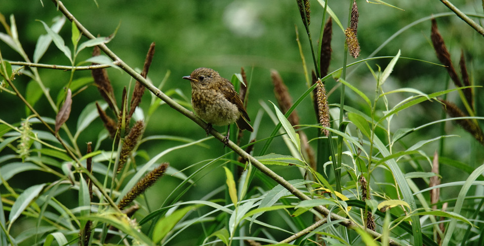 It had the size and shape of a Robin but the colours of a Wren and after looking at it through my camera lens and taking a few pictures I could tell that it was a juvenile Robin. The juvenile Robin has none of the red or grey but has more of a mottled brown body.