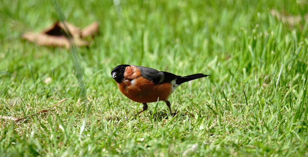 This hide has several feeders stationed 10-15 metres in front of the hide and at that time there was very little about. Then I spotted a male Bullfinch sitting on a steel frame holding the feeders over to the left side, this Bullfinch kept dropping onto the feeders and flying back to the top of the steel frame. A Robin then appeared on the bird table to the right, with a few Great Tits visiting the feeders behind the bird table. Just before we left the hide the Bullfinch flew across and landed on the ground beneath the bird table and I was able to get a couple of better photos.