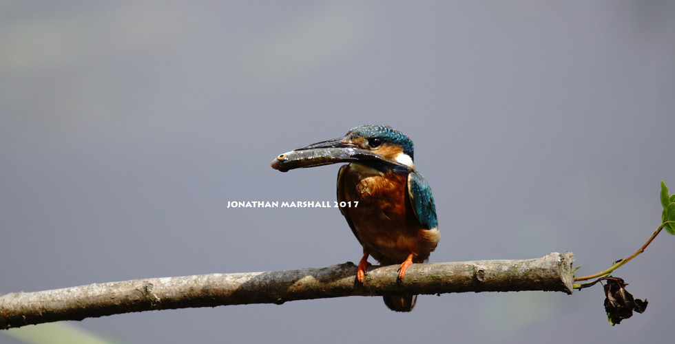 After settling in and a 5 minute wait in came the male Kingfisher with an absolute whopper of a fish that looked bigger than it could handle. After a few seconds it dived down and went into the nest burrow to pass the fish to the female and young. This is apparently the second brood for this pair, having successfully bred earlier in the year. A few seconds later the Kingfisher reappeared from the burrow and dived into the water before moving back up to the branch. It repeated this a couple of times before flying away from the nest.