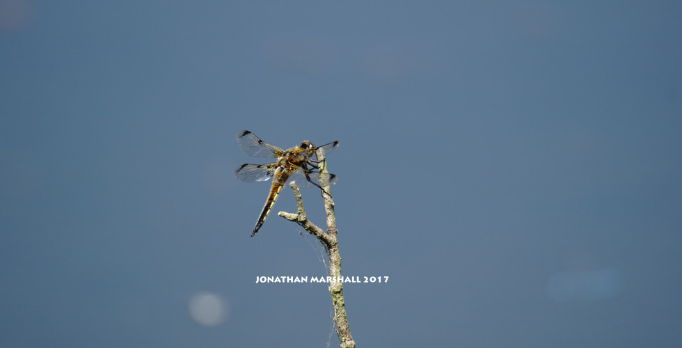 After leaving this hide we headed the short distance to the O Reservoir, again like the D Reservoir, named due to its shape. On our journey clockwise round the reserve we arrived at a small lagoon where we saw a Four Spotted Chaser Dragonfly and after watching it for a couple of minutes I managed to get a good photo of it before moving on to the next hide. All but a couple of the hides round the O Reservoir look away from it and on to marshes and lagoons. The first of these hides we came to looked over South Marsh East.