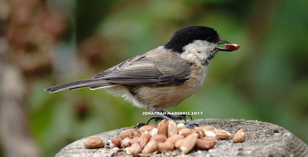 After 20 minutes I was about to get up and move onto the Kingfisher screen when a pair of Willow Tits arrived at the feeders. This bird is often confused with the very similar Marsh Tit, they can be separated by the fact that the Willow Tit has a brighter coloured breast. After moving about on the branches and feeders for a few minutes I was able to get a couple of good photos until they were scared off by the much larger juvenile Blackbird.