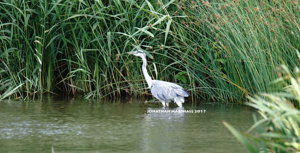 Looking out over the reedbeds there was a lone Grey Heron wading through the water looking for food. A Cormorant the flew round in a circle over the reedbeds before rising up and landing on an electricity pylon. A Jay then flew from the right over towards the river closely followed by another Jay. Looking out the other way over the wet grassland there were a few Mallards and another Grey Heron at the back. Returning to the path I moved on to the next hide where I hoped to get a better view of the Grey Heron I had seen from the previous hide.