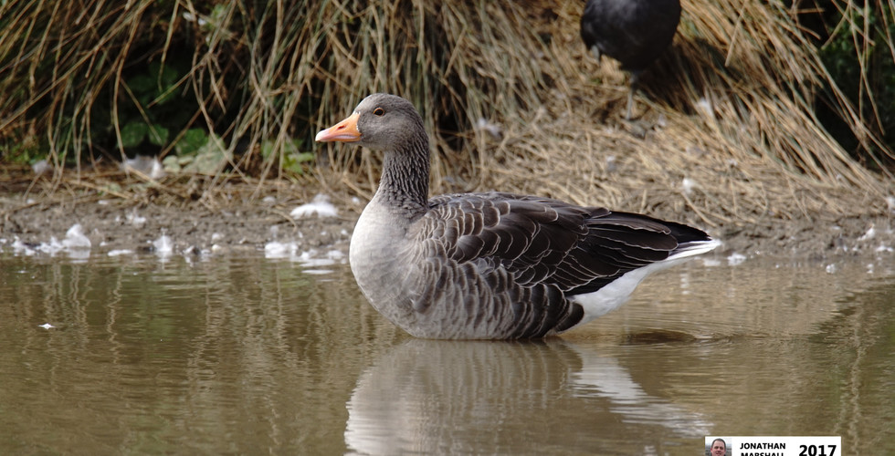 As I left the hide I went to see if the Goldfinch was still there, but alas it had gone so I carried on to the hide overlooking Target Lake. Surrounding one of the islands on Target Lake were several Greylag Geese, a few Canada Geese and a lone Coot. On the far side of the lake several Great Crested Grebes were swimming with the juveniles making a lot of noise and disturbing the sleeping Pochard. After a few minutes I left the hide and continued on towards the next one.