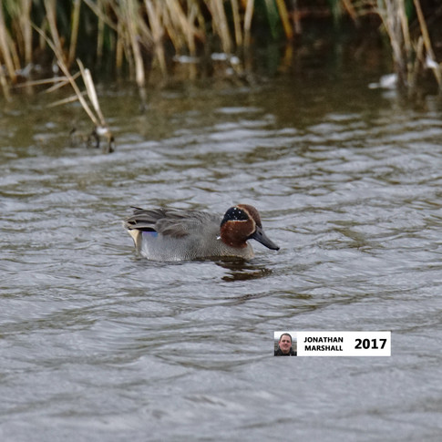 Out on this pool there were several Black Tailed Godwits and more Wigeons, Teals and Shovelers. From here I returned to the path and followed west along the edge of a field to the second hide which is half way along Christie's Pool, this is a small hide about the size of