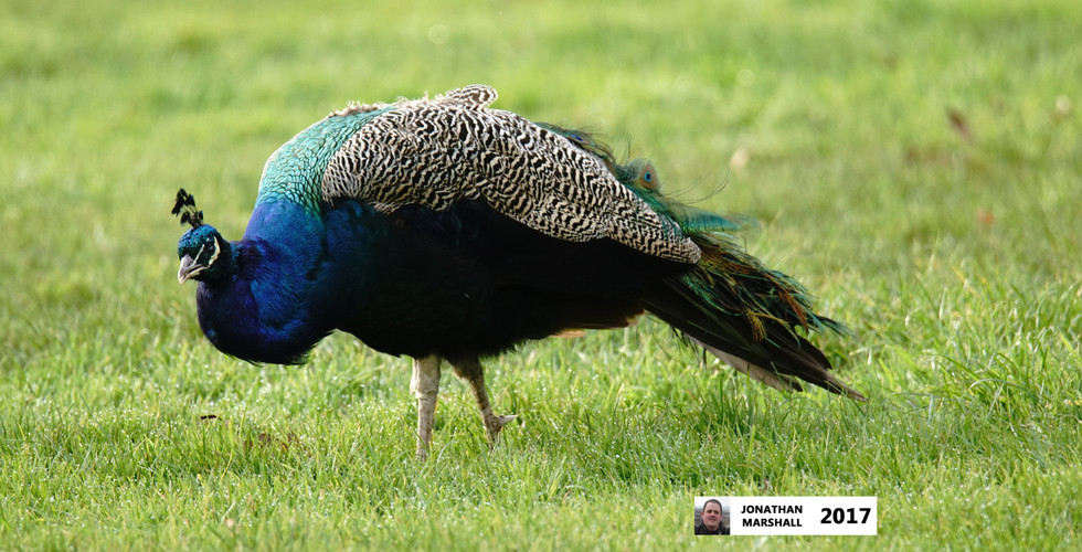 At the top of the Arboretum Lake is a Caucasian Wingnut tree on the banking separating the lake from Atkinson's Bog which had several Mallards on it. As I made my way back to the visitor centre there was a lone male Pheasant walking along the grass. When I reached the visitor centre a lone Peacock was slowly making its way along the grass towards the bird feeders. As I was having my lunch a male and female Chaffinch perched on the fence, chairs and tables of the outside seating area looking for scraps dropped by customers.