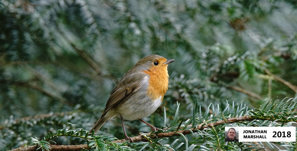 The Bird of Prey Centre sits within a walled garden with birds such as Laughing Kookaburras, Jackal Buzzards, Crested Cara Caras and Eurasian Eagle Owls. Next door in the Mammal Centre there are animals such as Meerkats, Goats, Wallabies and a few different breeds of chicken. After a look around the Bird of Prey and Mammal Centre I headed back towards the lake where I spotted a Robin perched on the branch of a fir tree with a pair of Blue Tits a little further up the tree.