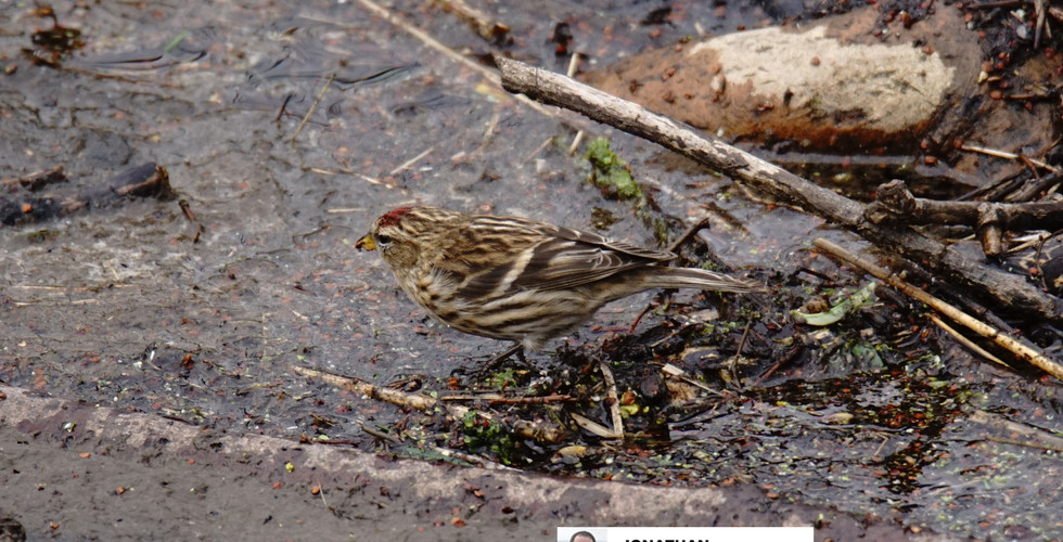 Sadly I would not see the Kingfisher, however, ferreting about amongst the tree that had fallen into the river was a pair of Common Redpolls. As the Common Redpolls moved further out into the open a Willow Warbler flew across the river and landed in the fallen tree and a Wren soon followed it. The Wren began to sing and another Wren responded to it and they began to sing back and forth across the river until a minute or so later the Wren on the near side flew across to join the other one.