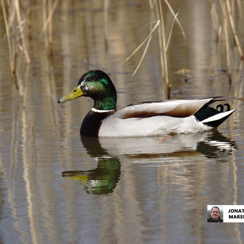 It was now approaching midday so I started to make my way back to the visitor centre for lunch. As I walked past the Reedbed Screen the Bittern boomed again and as continued on through the reedbed a Marsh Harrier circled overhead. Just before I reached the visitor centre I went and had a look in the Tree Sparrow Farm which was very busy. There were Blue Tits, Great Tits, Reed Buntings, Bullfinches, a Coal Tit and the Yellowhammer was there again. There were also Magpies, Pheasants, Stock Doves and Wood Pigeons present and in the water nearby a lone male Mallard Duck was swimming across towards a patch of reeds.