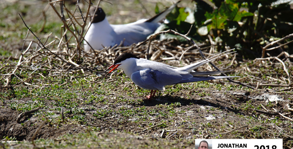 Before I reached the Information Centre I turned left and walked along the path by the Vegetable Garden again. A Common Tern flew in and landed right next to me on the wall for a few seconds before it was chased off by the Blacked Headed Gulls. To my left on the grass, amongst the Puffins, Common Terns and Black Headed Gulls, were a group of about a dozen Sandwich Terns - a bird which I had never seen before.