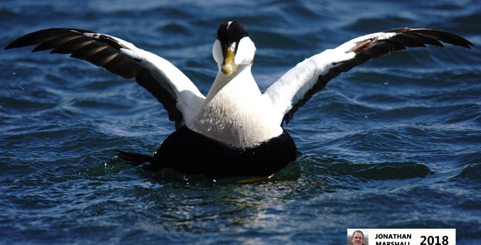A Herring Gull flew up from the rocks and landed on the harbour wall and appeared to be eyeing up my ice cream before it flew off. A pair of Eider Ducks had come off the sea and made their way to a small rock pool and were currently taking a drink from it and as they returned to the sea I started to make my way home after a fantastic day at the Farne Islands.