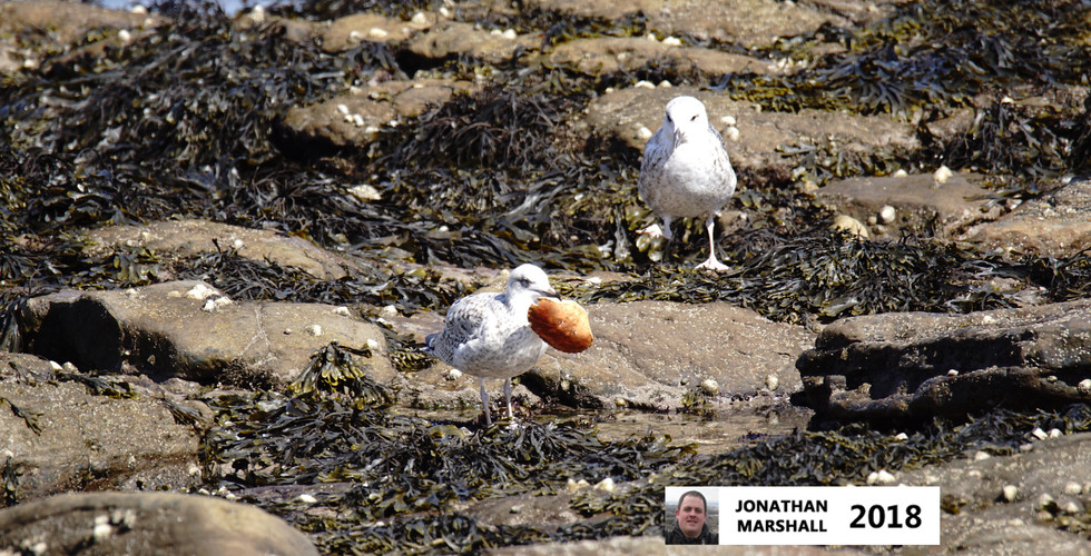 Once I had paid I walked down to the Harbour to the National Trust kiosk at the start of the Harbour wall to pay my landing fee. I then moved on to the Serenity kiosk located near the National Trust one and amongst other companies licensed to land on the Farne Islands. I was asked to return to this point at 11:30am and I would be escorted to the boat taking me out to the Farne Islands at 11:45am. It was only 10:40am so I had a look at rocks behind the left hand harbour wall which were currently full with Herring Gulls.