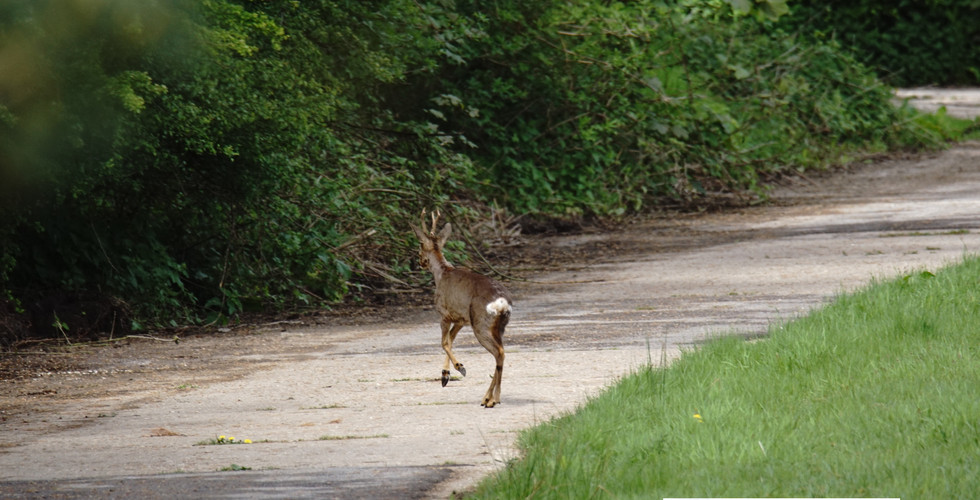 It was a bright sunny day as I approached the reserve and sat on concrete fence posts which line parts of the approach road were a trio of Yellow Wagtails. Once I arrived I walked up the wooden walkway to the reception hide and as I neared the entrance to the hide I saw a Roe Deer bounding along the grass to the left away from the hide. On the feeders to the right of the hide there were a pair of Goldfinches and out on D reservoir in front of the hide there was a group of Tufted Ducks and a single Great Crested Grebe.
