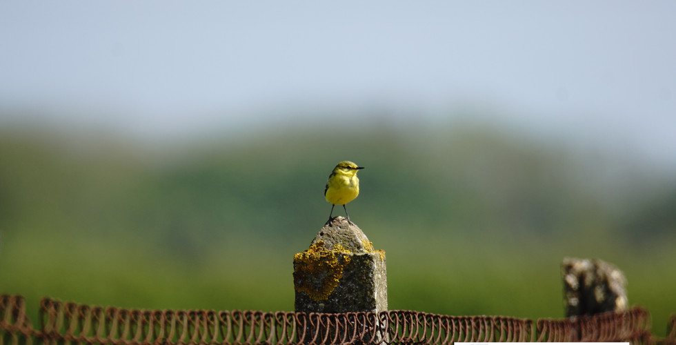 I left the hide and walked back along the route all the way to the Reception Hide where a Blue Tit was perched on a branch high above the feeders. As I drove back down the approach road the number of Yellow Wagtails had now increased to six and they were regularly perching on the concrete posts and the rusty fence. In the field there were a group of six Linnets and several Red Legged Partridges and a single Yellowhammer rose up and flew off over the field of oil seed rape.