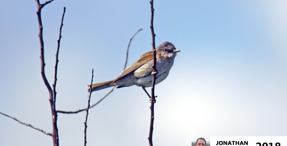 The Swallow repeated this a couple of times before rising up and heading towards the visitor centre. The path now turned into the bushes and as I reached the top of the grassland meadow I saw another Whitethroat perched on a bramble bush at the top of the field to my right. The path now turned left and headed towards the visitor centre and a little further along the Swallow returned and again flew low along the path right past me.