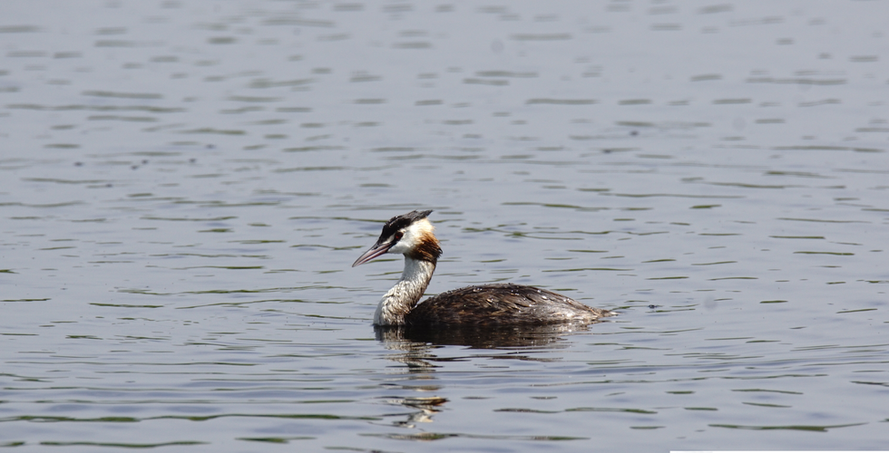 Sadly I would not see them but I did see a brief glimpse of a Bearded Tit as well as a couple of Reed Warblers moving to and fro across the water channel in front of the screen. I now walked on to the end of the trail and the Reedbed Hide where there were Coots, Moorhens and Great Crested Grebes on the water as well as a few Dragonflies at the edge amongst the reeds. After a few minutes one of the Great Crested Grebes started fishing about thirty feet in front of the hide and it got closer and closer with each dive under the surface of the water.