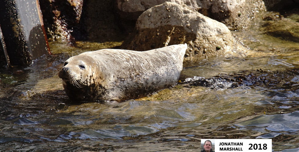 I was about to head back along the harbour wall when a fellow visitor spotted a Seal lying on a rock right next to the base of the wall. After watching the Seal for a few minutes I headed back down the harbour wall, over the footbridge and down through the main part of the village to a cafe on the seafront and had my lunch. From the seafront at the other side of the right hand harbour wall I could see several Herring Gulls and a few Oystercatchers on an exposed mass of rock that was slowly being covered by the incoming tide.