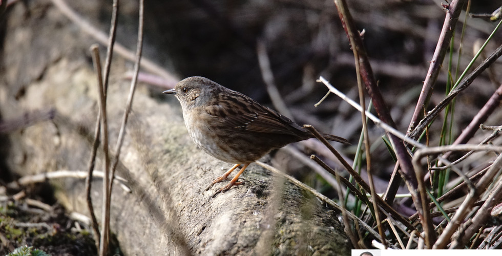 The Greenfinch now made its way through the branches and perched just behind the feeders as a Reed Bunting appeared from behind the hide. A little further off a Dunnock emerged from the bushes and hopped through a wire fence and landed on a log before heading back through the fence towards the feeders. Near the feeders a Willow Tit flew in and landed on a branch as the sun re-emerged from behind the clouds bathing it in sunlight.