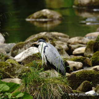 I now followed the path as it descended the hill and as it reached the river I saw a Blackcap feeding one of its young in the bushes before they flew off. Further along the path started to rise again and move away from the river but as it returned to the river, I could see several Grey Wagtails perched on stones amongst the shallow rapids of the river. One Grey Wagtail had some food in its beak and began to move closer and closer from rock to moss covered rock before flying off across the water and out of sight.