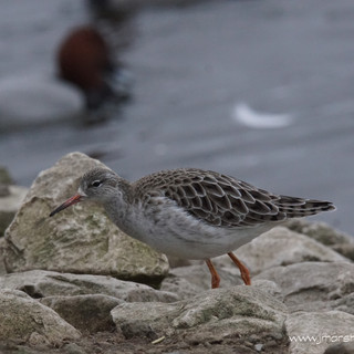 On the water I could see large numbers of Shelducks, Mallards, Greylag Geese and Whooper Swans as well as several Wigeons, Pintails and a few Pochards. Clambering over the small rocks in front of the hide were several Ruffs and about twenty yards to my right were a pair of Black Tailed Godwits. The water in front of the hide got busier and busier as it reached 3pm and as one of the reserve wardens appeared in front of the hide, the birds began to mass on the land in front of the hide.