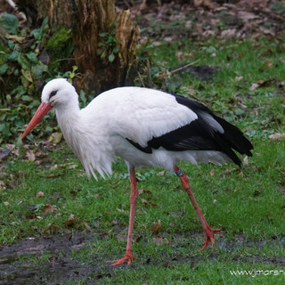 On the very large pond to my right I could see Puna Teals, White Cheeked Pintails, Chiloe Wigeons and a large group of vibrant pink Chilean Flamingos at the far side of the water. The path turned to the right heading towards the Flamingos and behind a fence on my left were Swan Geese, Hawaiian Geese and an absolutely stunning Falcated Duck. I now took the path that went down the side of the Flamingo building, through Eco garden to see the White Storks.
