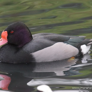 I followed the path to where on my previous visit there had been several Red Crested Pochards, but on this occasion the pond was empty due to erosion on the near side banking. They had been moved to the trio of connected ponds next to it where there were also several Ferrugnious Ducks, White Headed Ducks and a very curious Black Necked Swan which swam right to the front of the pond to look at me. To the other side of the path in "Ganderland" were several Red Breasted Geese, a pair of Ruddy Shelducks, Hawaiian Geese and Orinoco Geese.