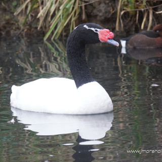 I walked back to the Otter enclosure where I could see one of the Otters tucking into a crab whilst the other two were also busy eating. I walked back up the hill past the Chilean Flamingos and half way up the hill I could see the two Magpie Geese had come down to the water's edge and at the top of hill the Red Shovelers were at the front of theirs. The Black Necked Swan again made its way to the front of the pond and over to my right in "Ganderland" the Hawaiian and Orinoco Geese had moved close to the path.