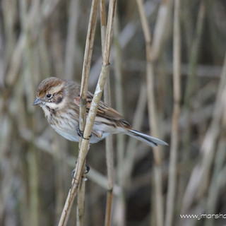 Out on the water was another Goldeneye and a few Tufted Ducks and after a few minutes I spotted a Wren flitting through the reeds in front of the hide. It stopped just in front of the hide and began to inch its way up and down a reed whilst singing away. The Wren spent several minutes singing from this reed before dropping down amongst the reeds and out of sight as several Reed Buntings now flew over the reeds to visit the feeders. The number of Reed Buntings swelled to more than a dozen as Blue Tits, Great Tits and Chaffinches also now appeared along with a lone Robin.