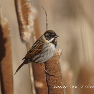 There were several more Reed Buntings moving through the reedbed in front of the hide and emerging from the reeds next to the feeder was a Water Rail. It spent a couple of minutes probing the mud under the feeders before scurrying off back into the reeds. A Coal Tit flew across to one of the feeders before it was scared off by a group of Tree Sparrows who were soon joined by a Long Tailed Tit at the base of the feeder. In a small bush just behind the hide I spotted a female Yellowhammer moving from branch to branch before flying across to the feeders.