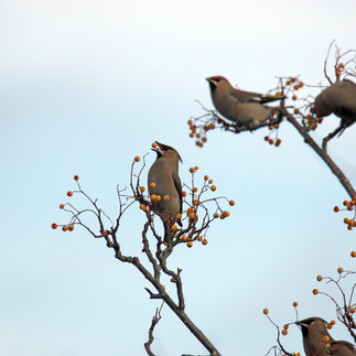 Every winter Waxwings make their way over to the UK from Scandinavia to feast mainly on Rowan berries. The number can vary greatly depending on the abundance of available food in their breeding regions. This year it has been poor leading to much larger numbers migrating to the UK with a flock of more than 500 being seen in Elgin, Scotland recently. A group of Waxwings are known as a Museum of Waxwings and I was lucky enough to see 7 together feasting on Rowan berries in a Lidl supermarket recently. I have attached the few photos I managed to get below.