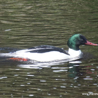 In the trees just next to the car I spotted a Robin, male Chaffinch and, squatted down on a branch, a Collared Dove. I walked across to the bridge and headed down the eastern bank of the River Wharfe and I hadn’t gone more than fifty yards when I spotted a male and female Goosander on the far side of the river with the female perched on a rock and the male diving under the surface of the water. Eventually the female Goosander moved off the rock and joined the male diving under the water looking for food before they both began to swim up river.